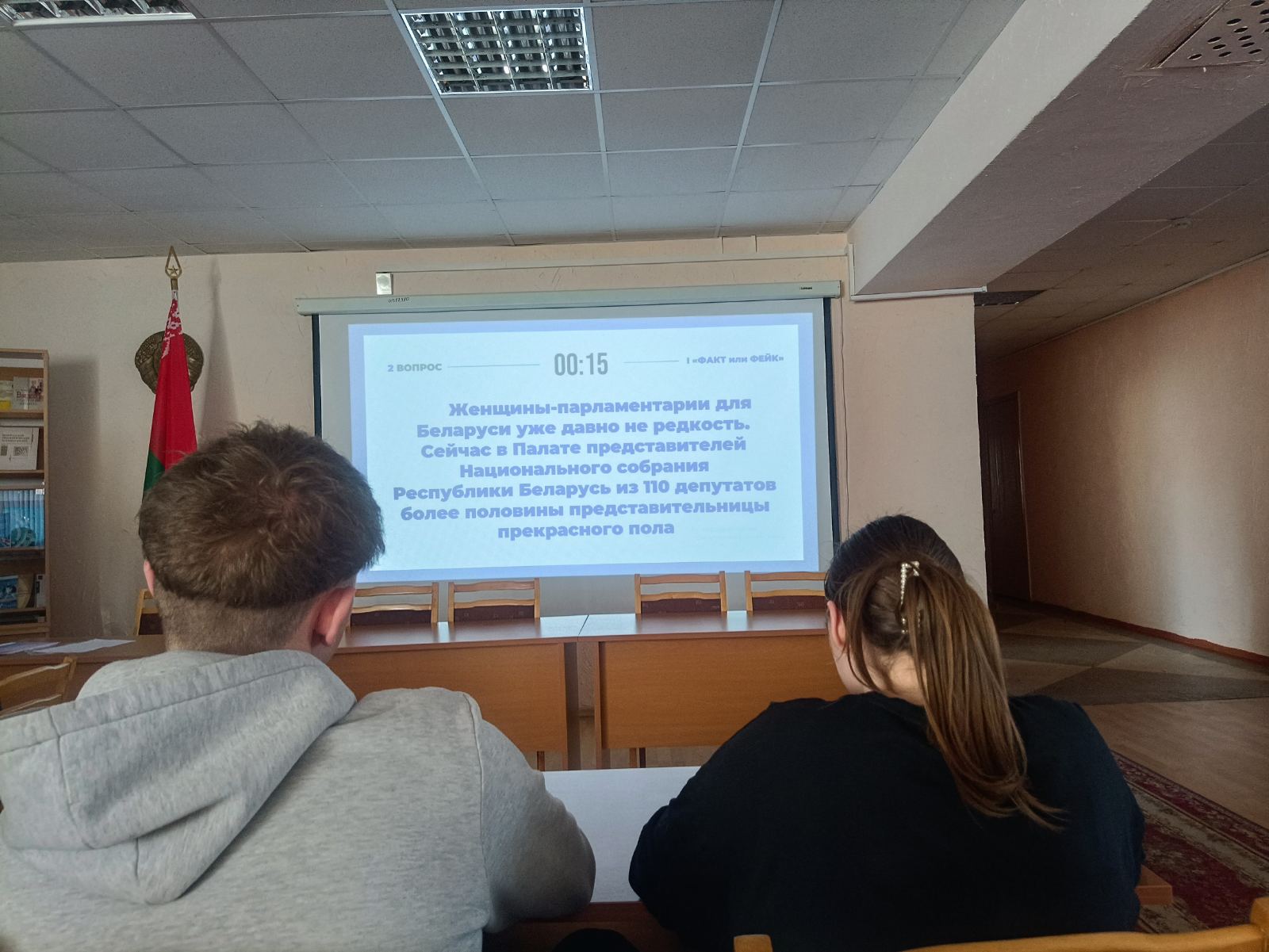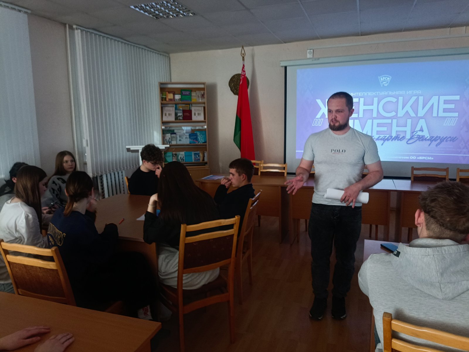 Секретарь первичной организации ОО "БРСМ" колледжа Весенин В.А. провел с учащимися игру "Женские имена на карте Беларуси". Мероприятие приурочено к Году белорусской женщины и направлено на изучение вклада выдающихся соотечественниц в историю и культуру страны.