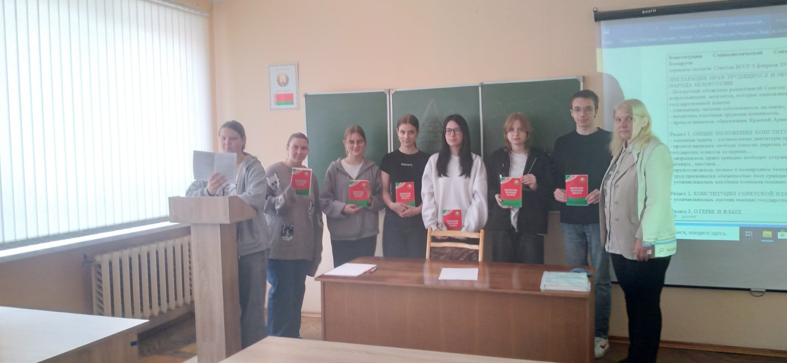 13 марта 2026 года преподавателем Смольской С.В. с учащимися группы 13 вет специальности "Ветеринарная медицина" проведён информационный дайджест на тему "Конституция Республики Беларусь и её значение в жизни народа". В ходе проведения мероприятия были рассмотрены вопросы содержания Конституции Республики Беларусь и её значении для страны, а также правовой статус граждан Республики Беларусь