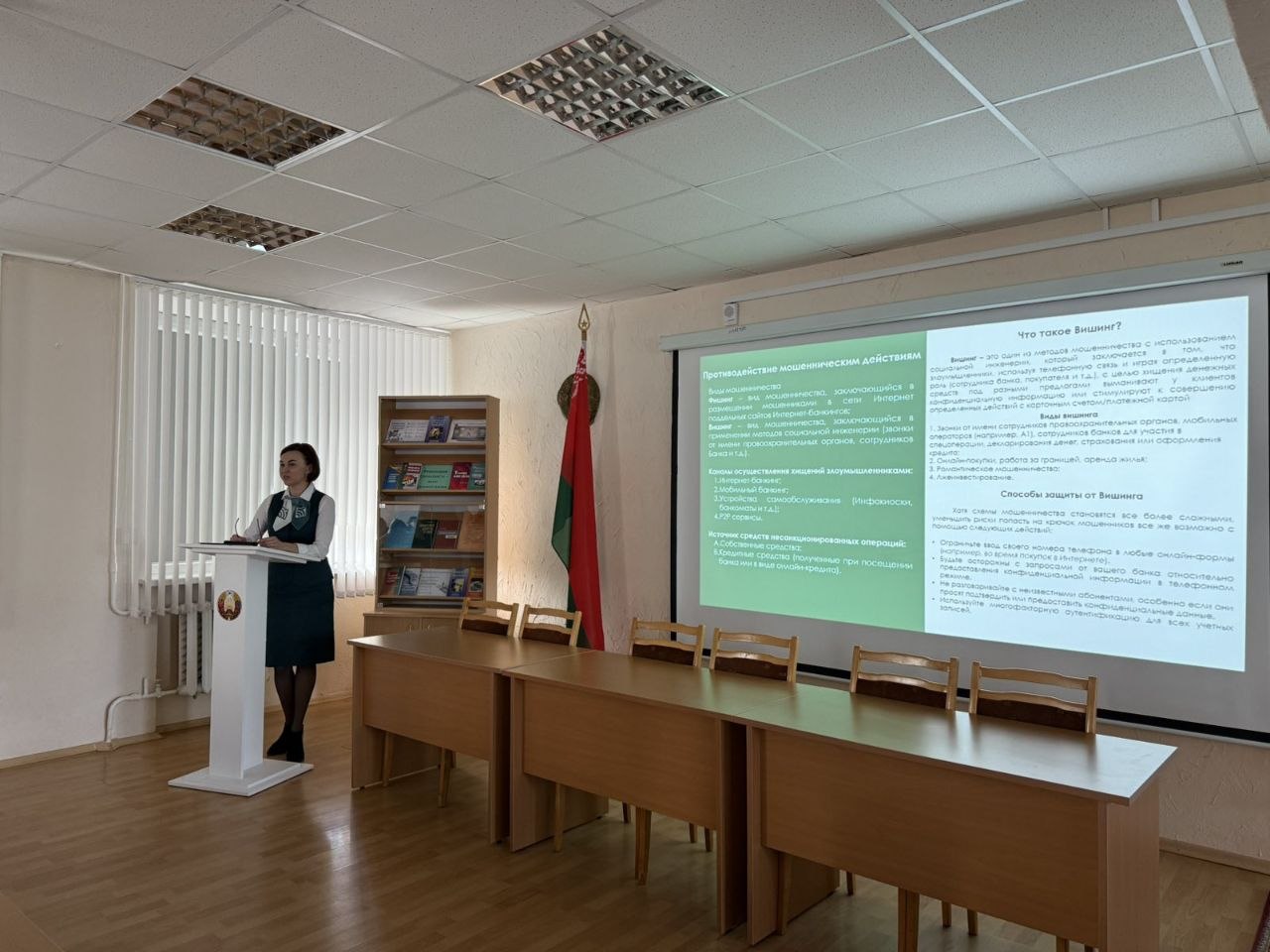 В колледже состоялась встреча с представителем Беларусбанка. Проведено практическое занятие на тему: «Противодействие мошенничеству» с учащимися 1 курсов. Основные цели мероприятия по противодействию мошенничеству в Республике Беларусь включают защиту активов граждан и юридических лиц, снижение уровня киберпреступности, повышение цифровой грамотности населения, а также обеспечение безопасности банковских операций и предотвращение коррупционных рисков. Учащиеся получили достоверную информацию и ознакомились с правилами, как сберечь свои деньги и защититься от мошенников.