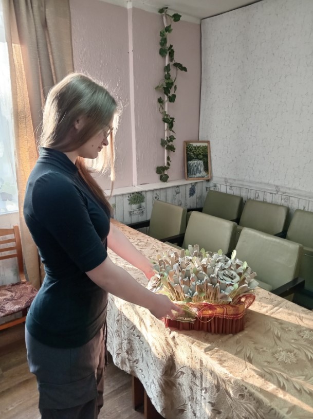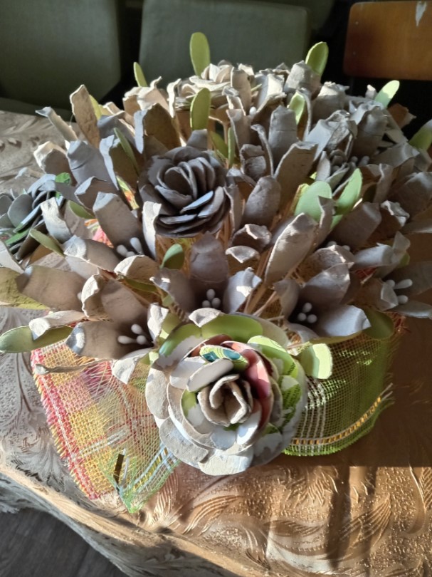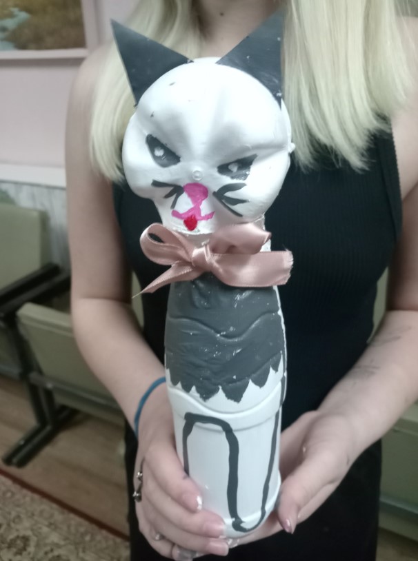 В 5 общежитии нашего колледжа была организована выставка поделок из бросовых материалов. Иногда и предположить невозможно, какую красоту можно создать из материалов, идущих в утиль: лотков из-под яиц, остатков ленточек, шпажек, пластиковых бутылок и тому подобных вещей. А вот и наши участницы и их работы.