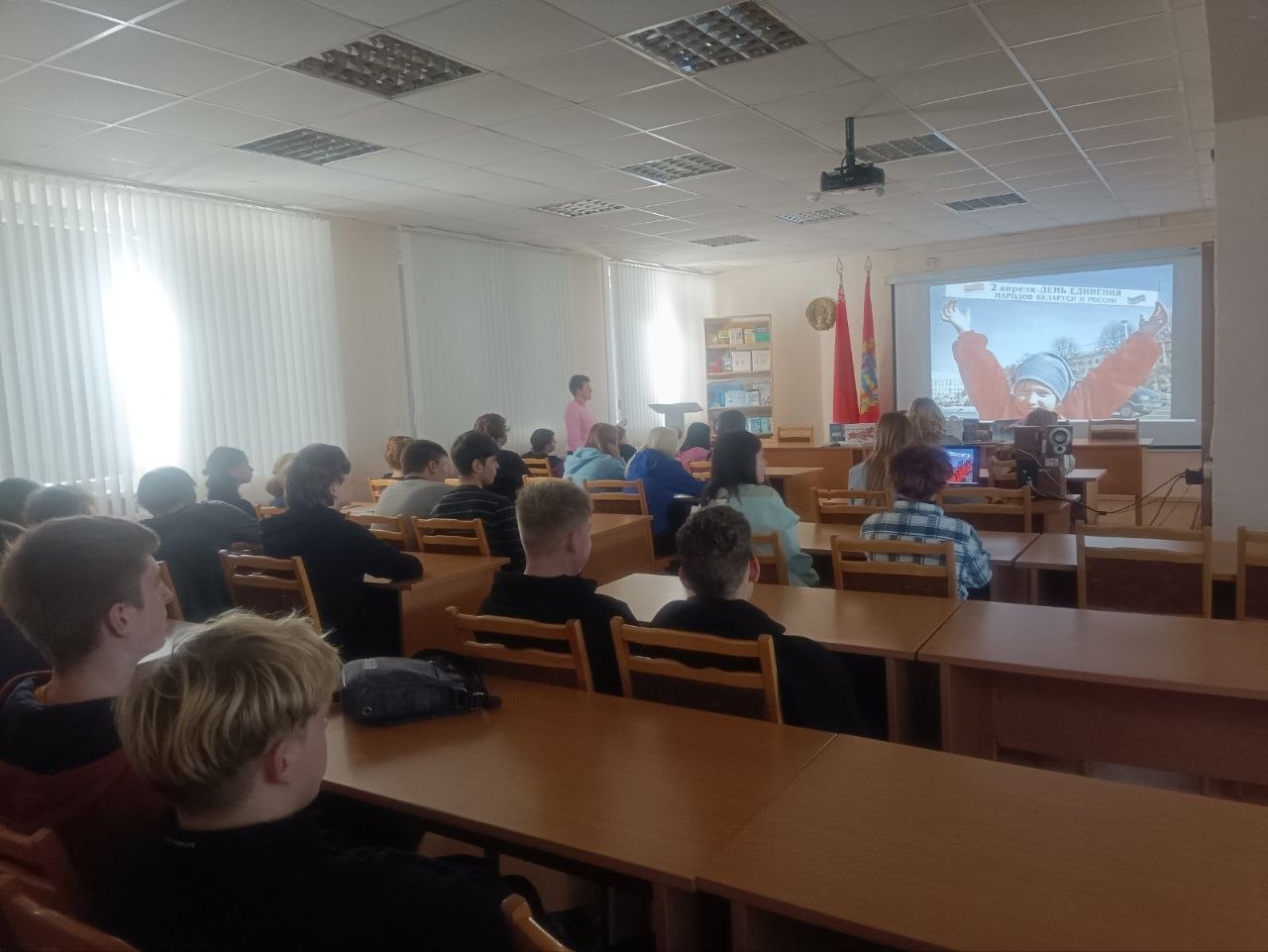 В библиотеке нашего колледжа для учащихся 1 курса прошло мероприятие посвященное Дню единения народов Беларуси и России